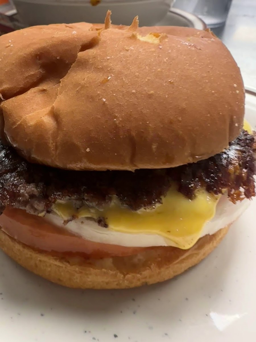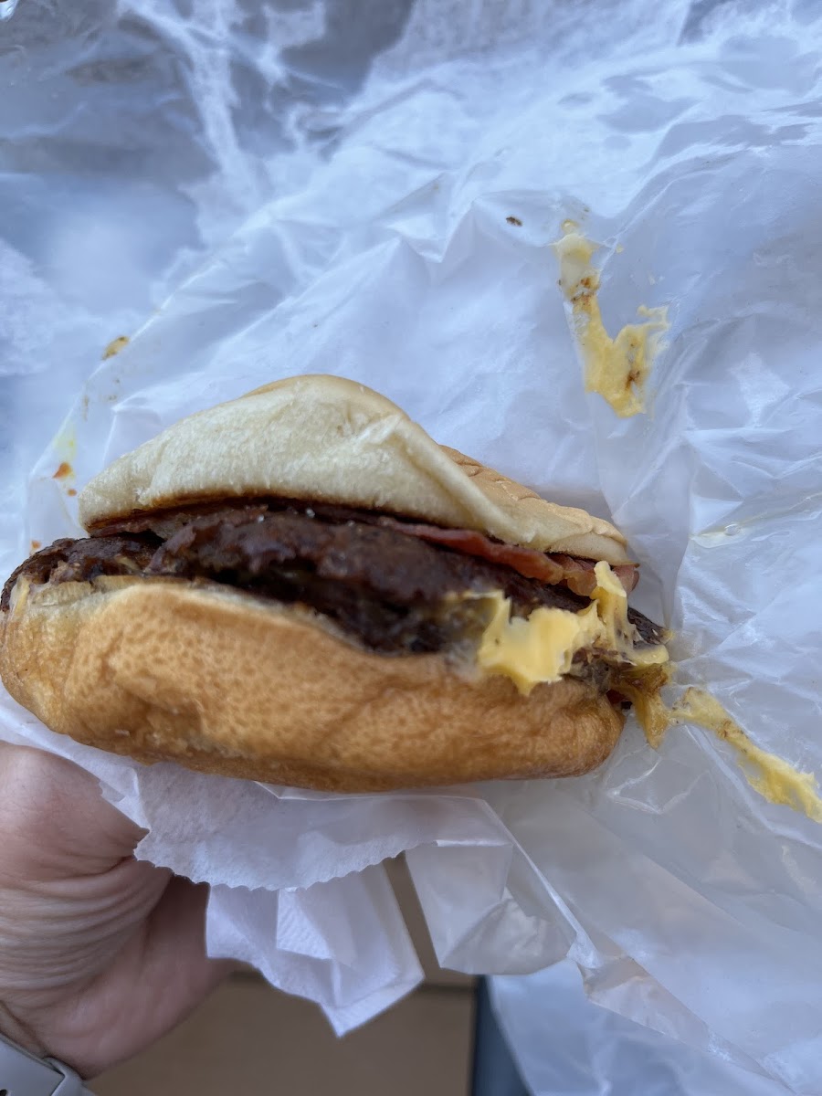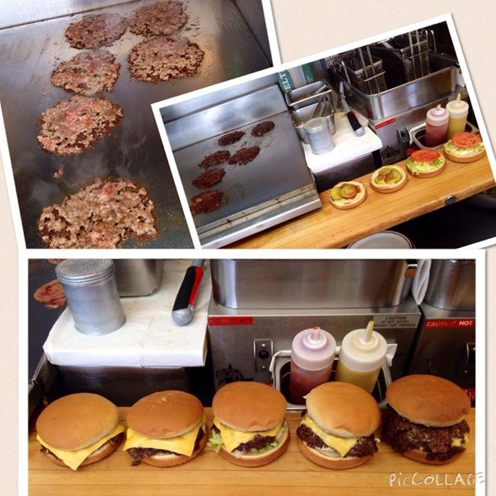 Fantastic smash burgers. I had a single chili cheeseburger with onions, lettuce, tomato and pickle. Theyre prepared fresh before your eyes on an old timely griddle. Customer service was top notch. Setting is a 1950s vintage drive in diner. Quaint and unpretentious. Enjoy your meal!